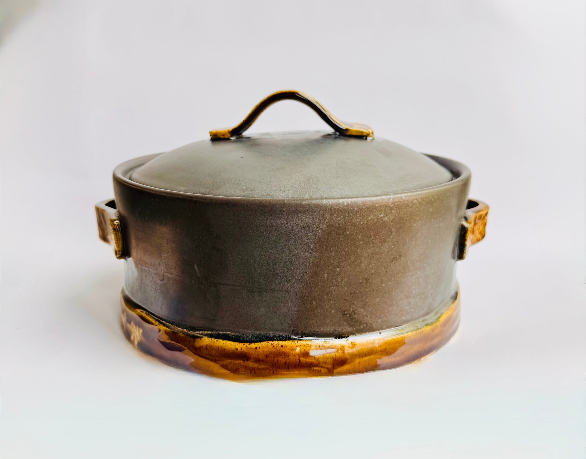 Black Serving Dish with Speckled Gold Base & Handles