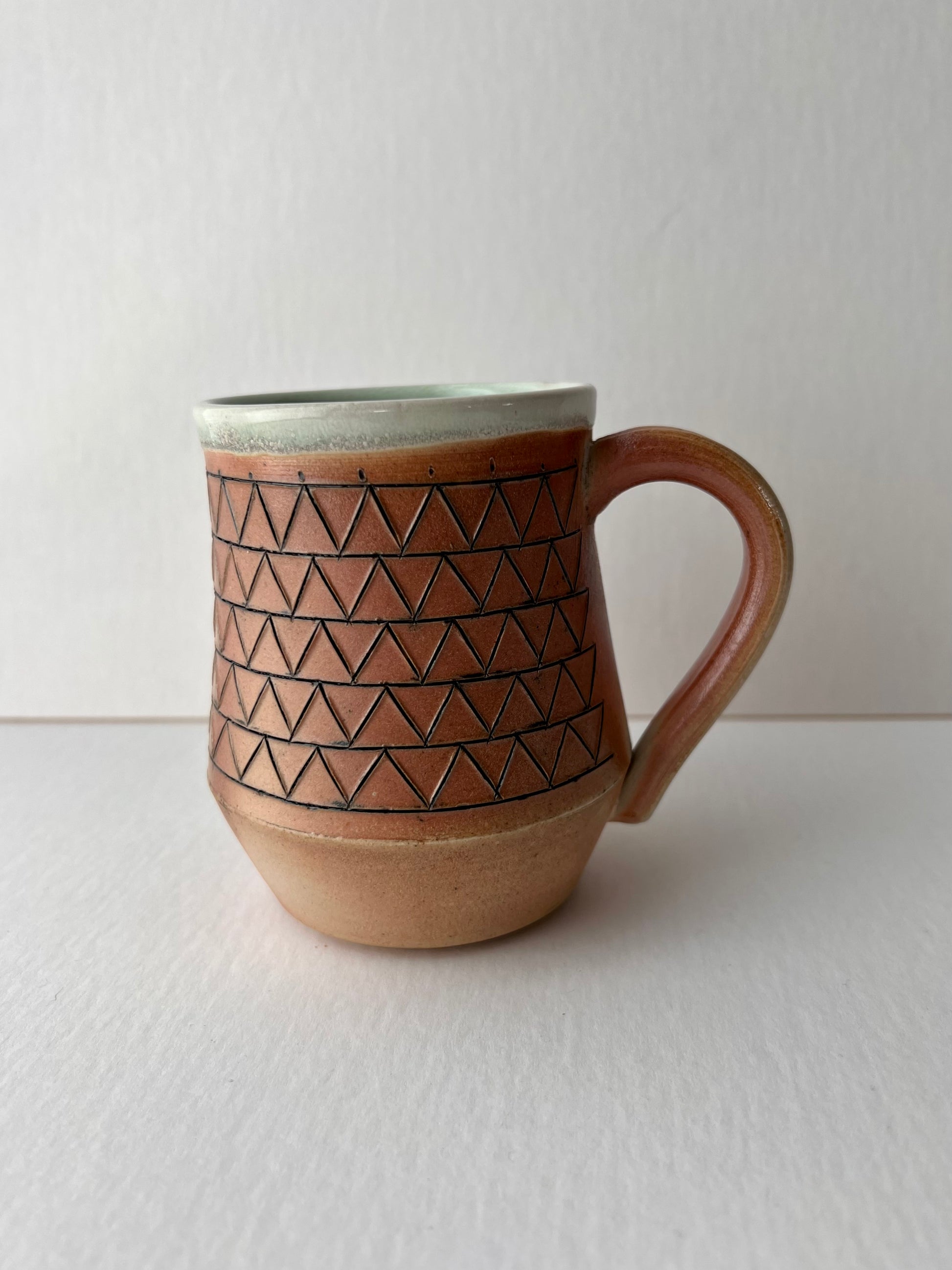 Soda Fired Mug with triangle pattern